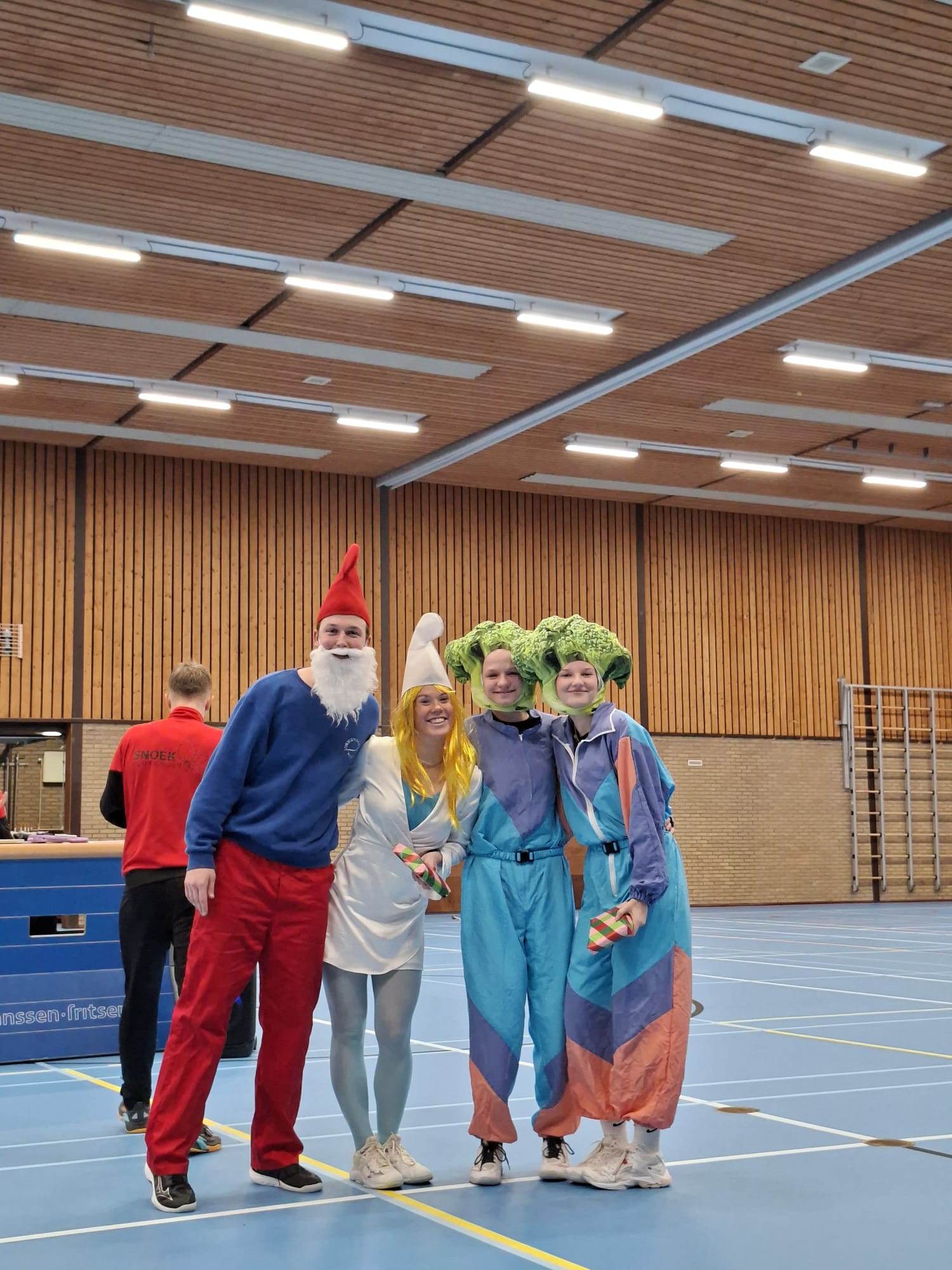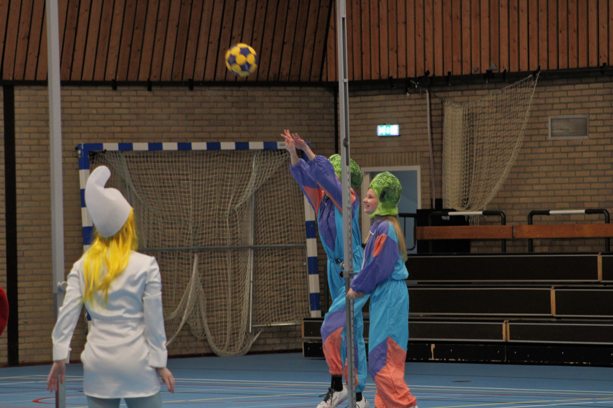 De sporthal vulde zich al snel met fanatiek gejuich en een flinke dosis gezonde competitie. Er werd niet alleen gestreden om de beker, maar ook om de prijs voor de leukste outfit. Uiteindelijk gingen Gabe van der Kooij, Benthe de Jong, Njisk de Schiffart en Dette Terra er met deze kleurrijke eer vandoor.